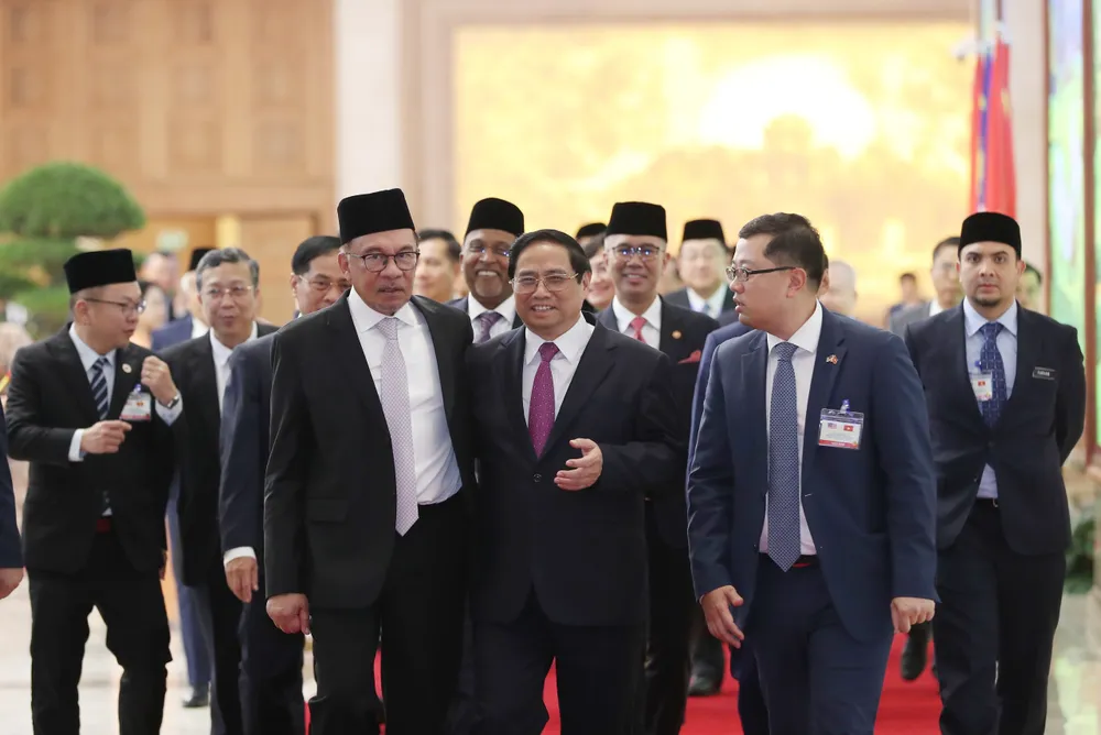 Trước khi hội đàm, Thủ tướng Phạm Minh Chính và Thủ tướng Anwar Ibrahim đã tham quan trưng bày ảnh về đất nước, con người và quan hệ Việt Nam - Malaysia do Thông tấn xã Việt Nam phối hợp với Văn phòng Chính phủ tổ chức.