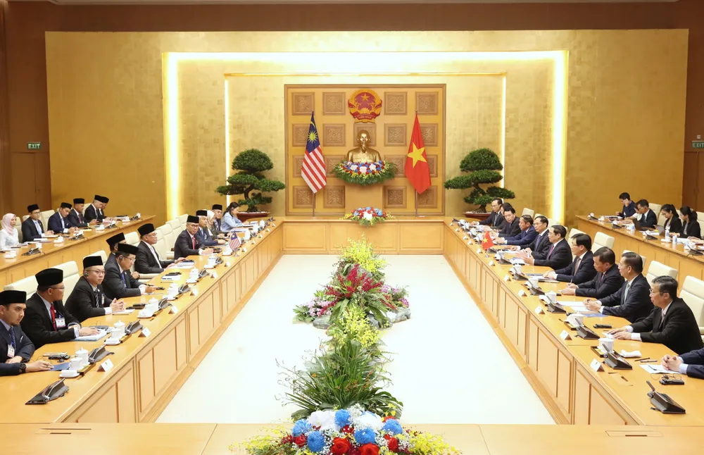 | Thủ tướng Phạm Minh Chính hội đàm với Thủ tướng Malaysia Anwar Ibrahim, chiều 20-7. Ảnh QUANG PHÚC |