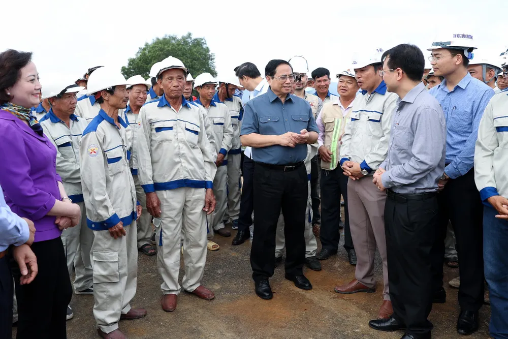 Thủ tướng Phạm Minh Chính thăm công trường thi công tuyến đường bộ cao tốc phía Đông đoạn Mai Sơn - QL45. Ảnh: VIẾT CHUNG
