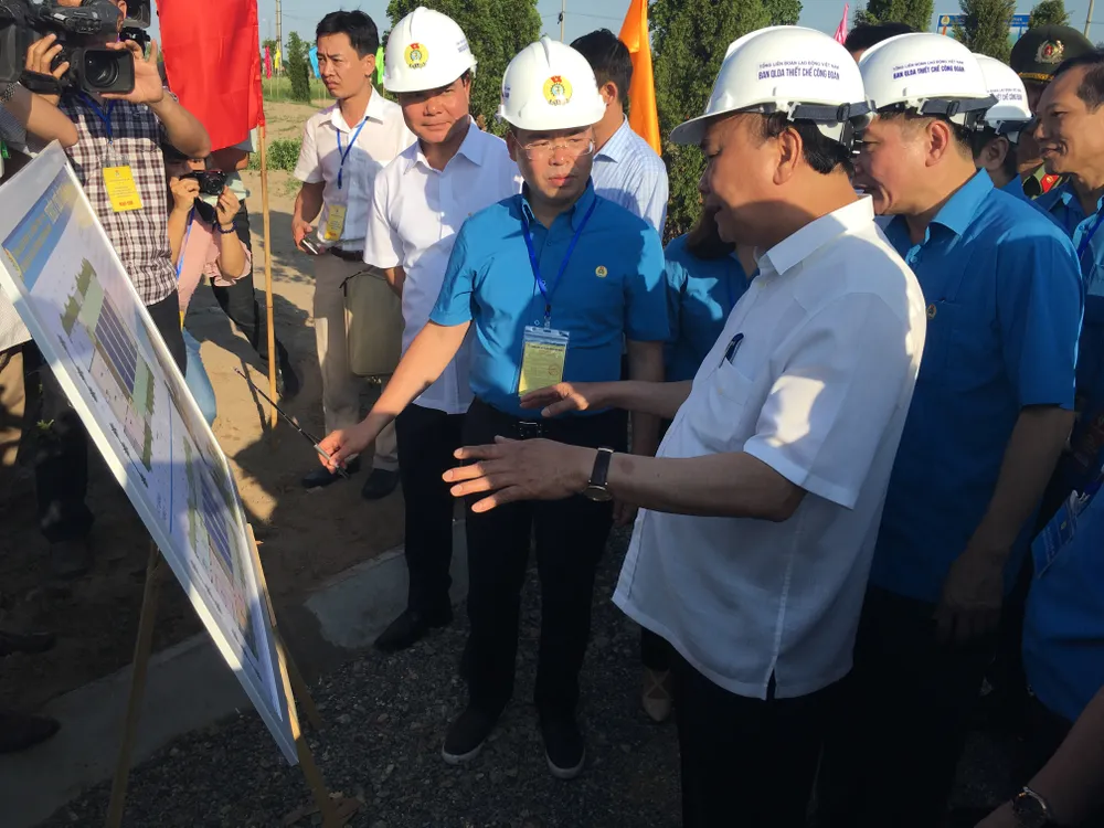 Chiều nay 19-5, Thủ tướng Nguyễn Xuân Phúc đã tới thăm khu nhà mẫu dành cho công nhân và người lao động tại khu công nghiệp Đồng Văn II, huyện Duy Tiên, tỉnh Hà Nam và thăm một số gia đình công nhân tại xã Bạch Thượng - cách khu thiết chế công đoàn của khu công nghiệp Đồng Văn II khoảng 3km.