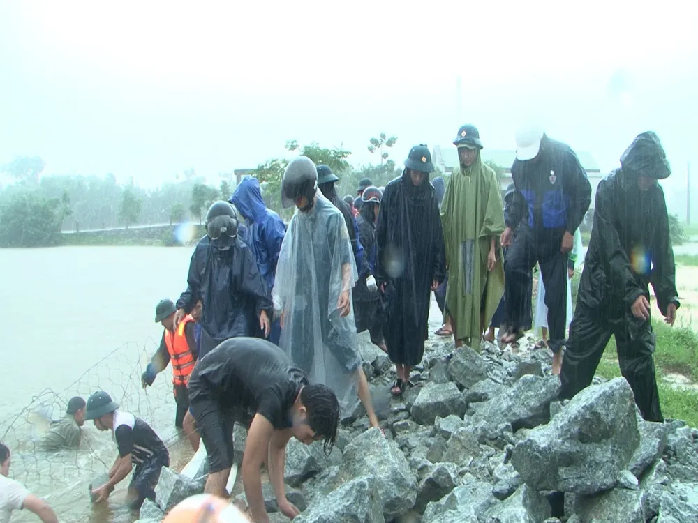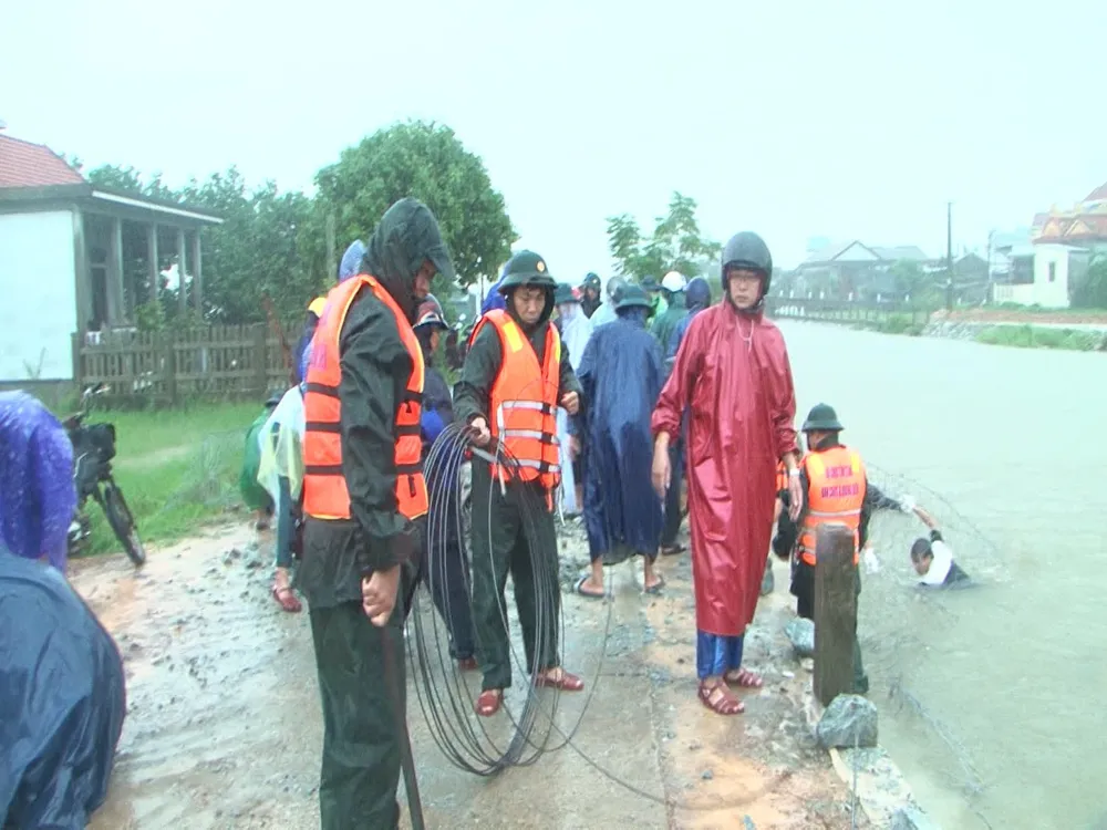 Trưa 13-10, Ban Chỉ huy quân sự huyện Quảng Điền huy động hàng chục cán bộ, nhân viên, lực lượng dân quân phối hợp với địa phương khẩn cấp gia cố đê cống Mai Dương dài gần 100m bị sạt lở nghiêm trọng, hở hàm ếch và ăn sâu vào nền đường giáp ranh thôn Mai Dương và thôn Lâm Lý, thuộc xã Quảng Phước, huyện Quảng Điền.