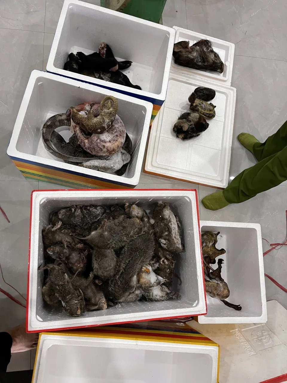 Các loại động vật hoang dã phát hiện tại nhà ông H. đều đã được cấp đông |