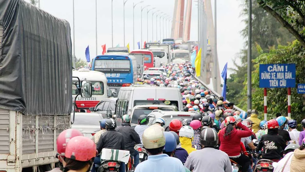 Cầu Rạch Miễu thường xuyên bị kẹt xe vào các dịp lễ, tết cuối tuần. Ảnh: HÀM LUÔNG
