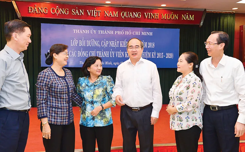 Phát biểu tại buổi bế mạc, đồng chí Nguyễn Thiện Nhân đánh giá cao kết quả của lớp bồi dưỡng, cập nhật kiến thức năm 2018 nêu trên và yêu cầu các học viên cần vận dụng để thực hiện tốt hơn nữa công việc tại đơn vị, địa phương. Bí thư Thành ủy TPHCM Nguyễn Thiện Nhân cũng yêu cầu, từ nay đến cuối năm 2018, các sở - ngành, quận - huyện, đơn vị của TP phải tập trung thực hiện nhiều nhiệm vụ trọng tâm. Đó là việc quyết liệt thực hiện có hiệu quả 7 chương trình đột phá và các chương trình bổ sung để đến cuối năm phải có kết quả lớn. Ngoài ra, thực hiện có hiệu quả Nghị quyết 54 của Quốc hội về thí điểm cơ chế, chính sách đặc thù phát triển TPHCM; Quy định 1374-QĐ/TU (năm 2017) của Ban Thường vụ Thành ủy TPHCM về quy trình giải quyết thông tin, phản ánh liên quan các tập thể, cá nhân suy thoái về tư tưởng chính trị, đạo đức, lối sống, vi phạm quy định của Đảng, pháp luật của Nhà nước; đề án xây dựng TPHCM trở thành đô thị thông minh.