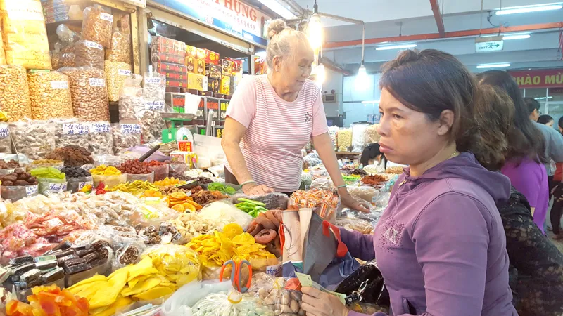 Dạo quanh các chợ truyền thống như Bà Chiểu (Bình Thạnh), Thủ Đức (Thủ Đức), Phạm Văn Hai (Tân Bình), Thanh Đa (Bình Thạnh)… thời điểm này, các mặt hàng thực phẩm khô như: tôm khô, mực khô, mộc nhĩ, nấm hương, miến… đã được tiểu thương bày bán khắp các sạp. Đối với loại thực phẩm chế biến khô như khô bò, khô mực tẩm ướp gia vị sấy chín và một số loại khô mới bổ sung vào thị trường vài năm trở lại đây như khô gà, cá cơm sấy khô cũng được tiểu thương các chợ nhập hàng về trưng bày và bán buôn. Với tính tiện lợi, các sản phẩm này đều được nhiều gia đình chuẩn bị sẵn để mời khách trong mấy ngày tết.