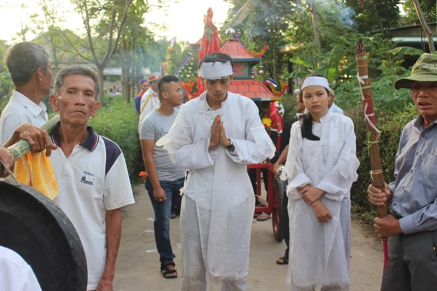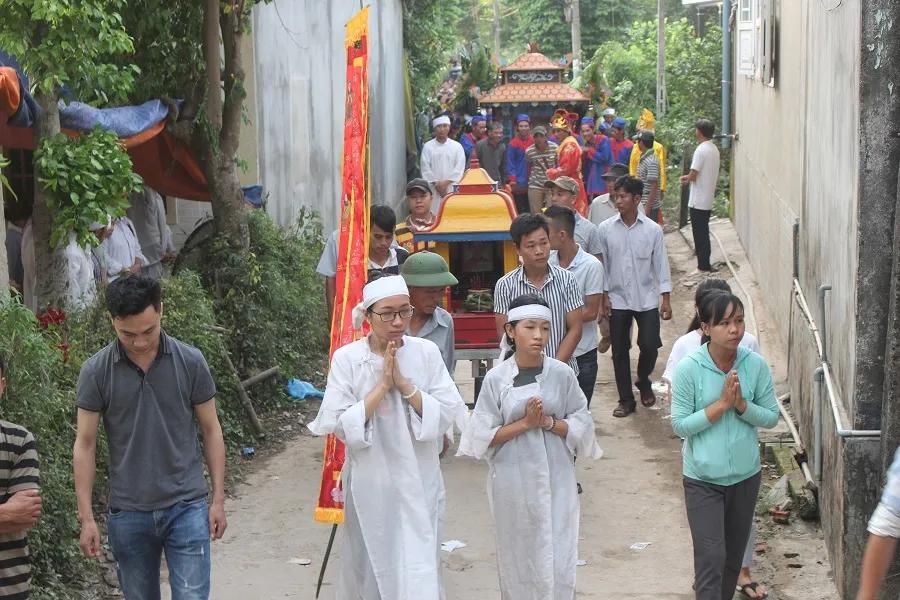 Các con anh Nguyền, chị Gái tiến đưa ba mẹ về nơi an nghỉ cuối cùng.