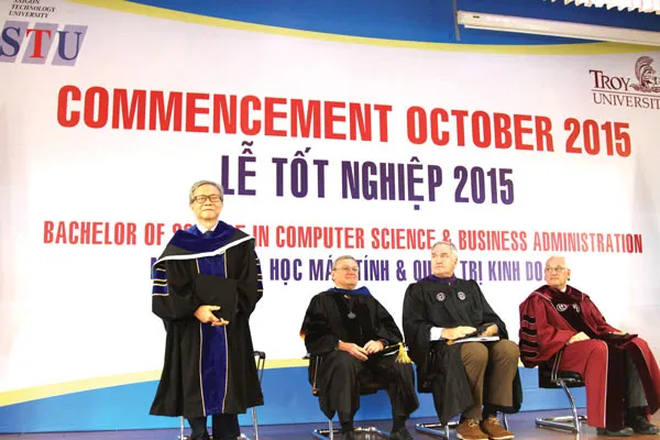 Trong lễ tốt nghiệp mùa thu 10/2015, TROY - STU Campus hân hạnh đón chào sự hiện diện của Ngài Luther Strange - Bộ Trưởng Tư pháp Bang Alabama Hoa Kỳ, cùng hai vị lãnh đạo cao nhất của ĐH TROY Hoa Kỳ: TS. Jack Hawkins - Viện trưởng Đại học Troy Hoa Kỳ và TS. Earl Ingram - Phó Viện trưởng cấp cao phụ trách học thuật Đại học Troy Hoa Kỳ. Phát biểu tại buổi lễ tốt nghiệp, TS. Jack Hawkins - Viện trưởng Đại học Troy Hoa Kỳ nhấn mạnh: “Chúng tôi rất tự hào về mối quan hệ với Đại học Công nghệ Sài Gòn (STU) và chúng tôi tự hào rằng TROY là trường ĐH đầu tiên của Mỹ trao bằng cử nhân tại Việt Nam. ĐH Troy được gọi là “Đại học quốc tế Alabama”, phục vụ sinh viên từ hơn 77 quốc gia trên thế giới. Điều này có nghĩa là các cử nhân của hệ thống ĐH Troy nhận được tấm bằng đại học mang tính cạnh tranh và giá trị toàn cầu. Sinh viên của Troy có thể am hiểu và thích ứng với môi trường làm việc tại các nền văn hóa khác nhau trên thế giới”. Ngài Luther Strange - Bộ Trưởng Tư Pháp Bang Alabama Hoa Kỳ nói: “Việt Nam đang nhanh chóng phát triển và mở rộng nền kinh tế, đóng một vai trò quan trọng trong khu vực kinh tế châu Á - Thái Bình Dương và ĐH Troy là một đại học toàn cầu. Điều này làm cho mối quan hệ đối tác của ĐH Troy và ĐH STU của Việt Nam ngày càng trở nên quan trọng trên nhiều mặt”.