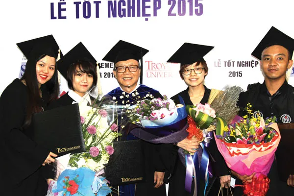 TS Lê Hiệp Tuyển (giữa) chúc mừng tân cử nhân Troy - STU Campus.