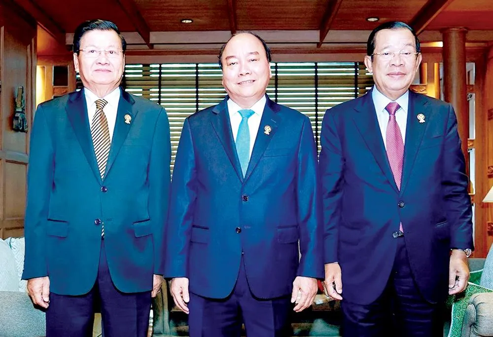 | Tại thủ đô Bangkok, Thái Lan, trong khuôn khổ chuyến tham dự Hội nghị Cấp cao ASEAN lần thứ 34, Thủ tướng Nguyễn Xuân Phúc đã có cuộc làm việc với Thủ tướng Lào Thongloun Sisoulith và Thủ tướng Campuchia Samdech Techo Hunsen. Ba Thủ tướng nhất trí hợp tác trong khuôn khổ tam giác phát triển Campuchia - Lào - Việt Nam, Tiểu vùng Mekong, sớm xây dựng Kế hoạch tổng thể kết nối ba nền kinh tế, nhấn mạnh tầm quan trọng thu hút các nguồn lực tài chính, kỹ thuật cho các dự án tiểu vùng. Ba Thủ tướng cũng nhất trí tăng cường hợp tác gìn giữ an ninh khu vực biên giới, thúc đẩy thương mại, đầu tư, kết nối vùng biên, khẳng định quyết tâm xây dựng khu vực biên giới 3 nước hòa bình, hữu nghị và phát triển. |