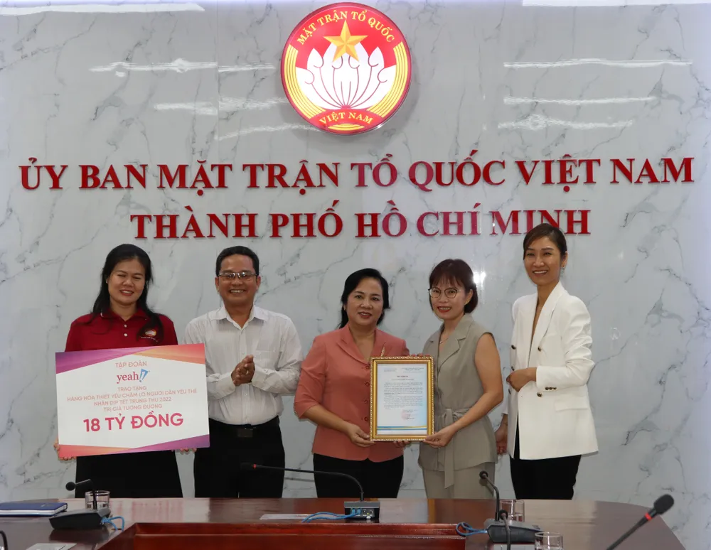 Trong buổi tiếp nhận và trao bảng tượng trưng kinh phí hỗ trợ, đồng chí Trần Kim Yến, Ủy viên Ban Thường vụ Thành ủy, Chủ tịch Ủy ban MTTQ Việt Nam TPHCM trân trọng cảm ơn sự đóng góp, giúp đỡ của Công ty cổ phần Tập đoàn Yeah1. Sự đồng hành này là nguồn động lực to lớn, giúp các em và gia đình có thêm điều kiện khắc phục khó khăn, vươn lên trong cuộc sống.