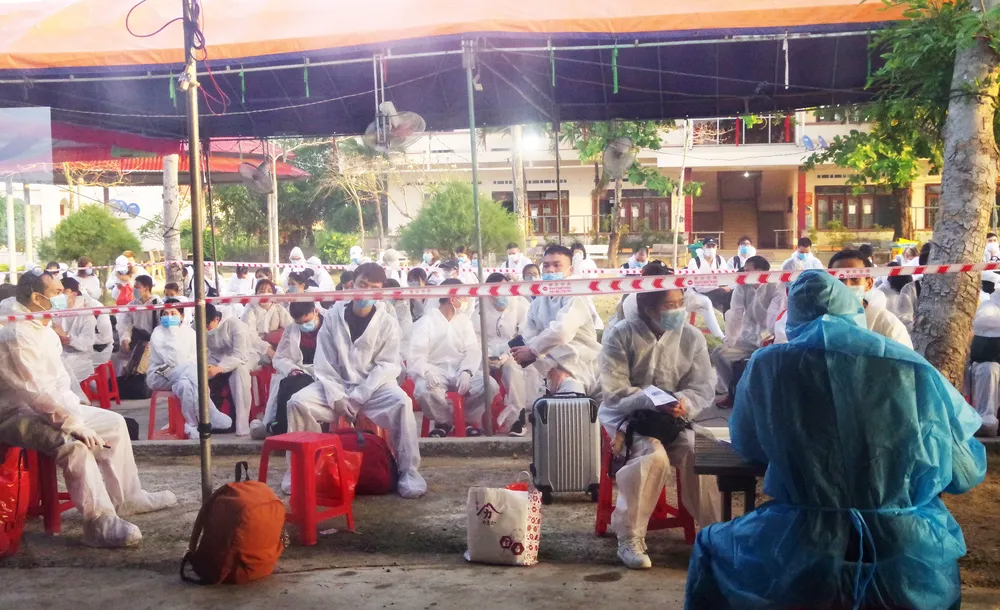 Tại Sở Chỉ huy Trung đoàn 739 (phường Bùi Thị Xuân, TP Quy Nhơn), các công dân được lực lượng chức năng hướng dẫn hoàn tất các thủ tục, công tác sát khuẩn để vào khu cách ly. Có nhiều phụ nữ, trẻ nhỏ đều trở về với tinh thần khá thoải mái và trang bị đầy đủ thiết bị bảo hộ, khẩu trang, nước sát khuẩn… Quá trình làm thủ tục nhanh gọn, các công dân được hướng dẫn trở về khu cách ly để bắt đầu ngày cách ly tập trung đầu tiên.