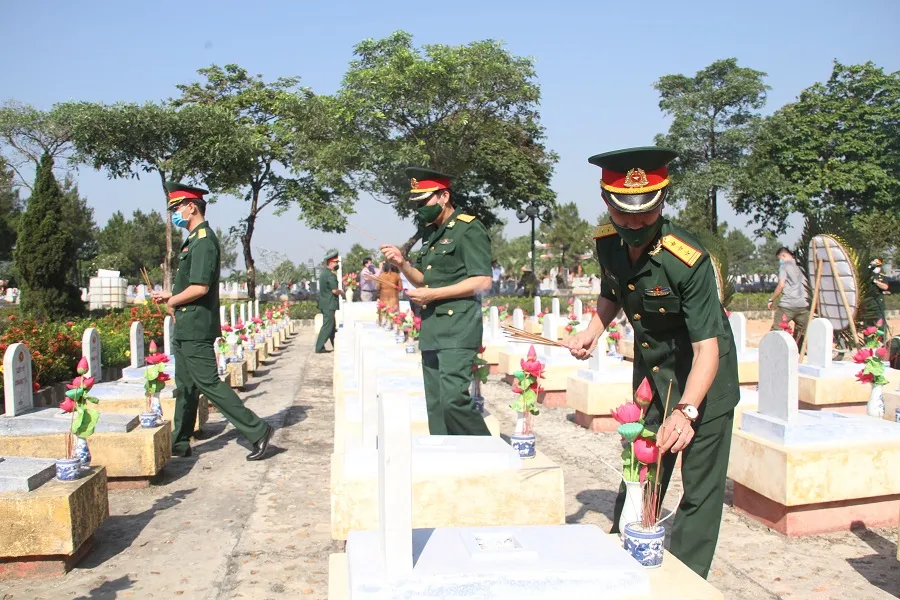 Tại Nghĩa trang Liệt sĩ Quốc gia đường 9 (tỉnh Quảng Trị) lễ đón nhận, truy điệu và an táng 16 hài cốt liệt sĩ và một mộ tập thể liệt sĩ được tổ chức trang nghiêm.