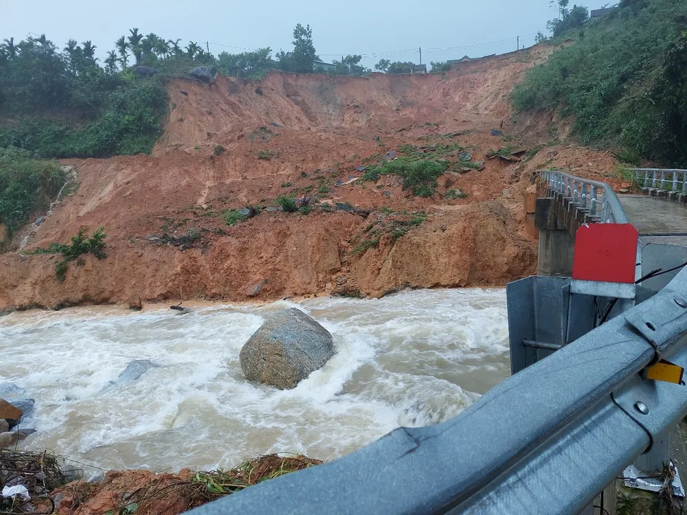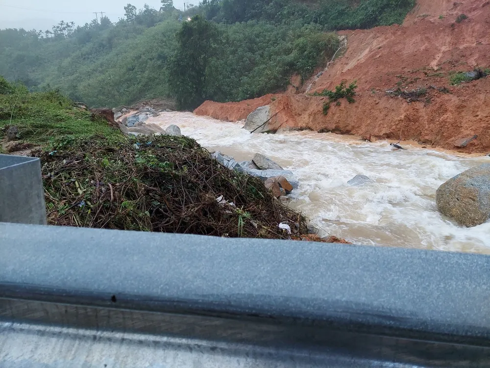 Tuyến đường nhánh N1 từ Khu dân cư A Nhoi đi UBND xã Sơn Long bị sạt lở nghiêm trọng với khối lượng đất đá sạt lở khoảng 3.000 m3, xe cộ không thể lưu thông được.