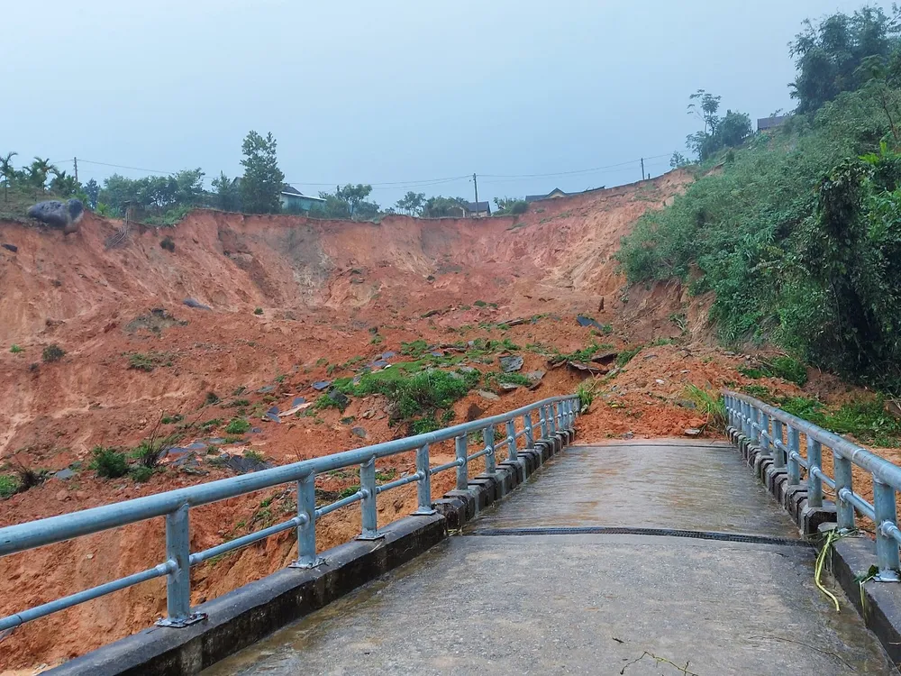 Sạt lở đã chia cắt điểm cầu đến gần Khu dân cư An Nhoi. Ảnh: ĐỖ THANH VƯỢT