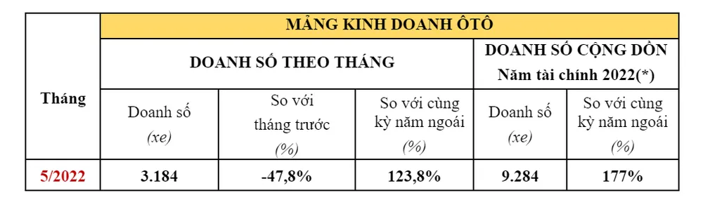 Đối với mảng ô tô, tổng cộng có 3.184 xe được bán ra trong tháng 5-2022, giảm 47,8% so với tháng trước, nhưng lại tăng 123,8% so với cùng kỳ năm ngoái. Trong đó, Honda City chiếm 52,3 % tổng doanh số bán ô tô của Honda Việt Nam trong tháng với 1.664 xe bán ra. Tiếp đến là Honda CR-V với 745 xe bán ra trong tháng 5-2022.