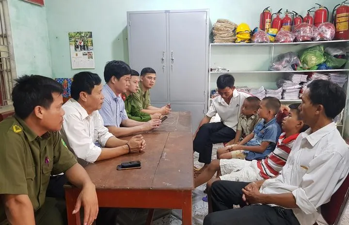 Đến sáng ngày 17-7, UBND xã Phúc Sơn nhận được thông tin 3 cháu đang ở UBND xã Diễn Kỷ (huyện Diễn Châu).
