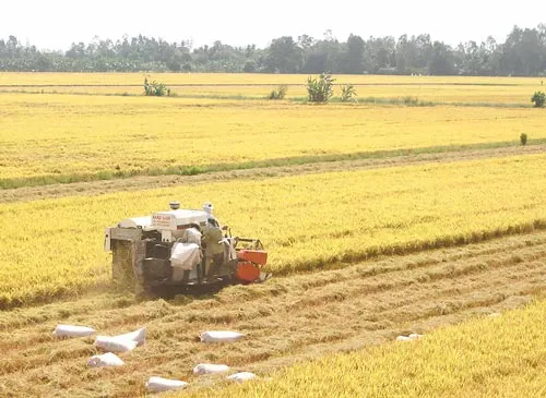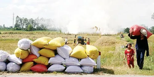 Phần lớn nông dân thu hoạch lúa rồi vô bao, bán tại ruộng. Đây là điểm yếu của sản xuất lúa hiện nay.