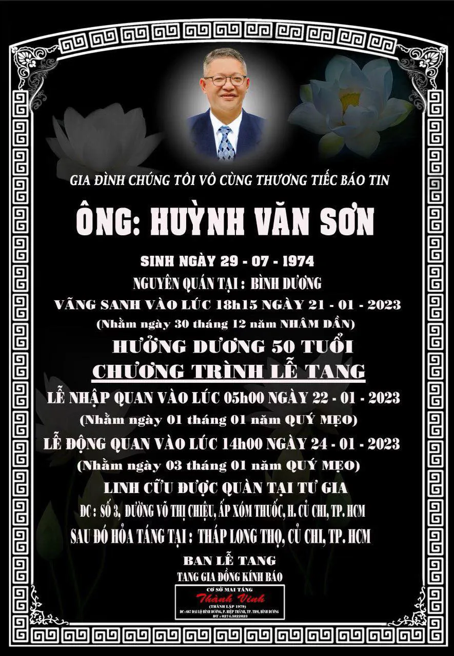 Ông: HUỲNH VĂN SƠN, sinh ngày: 29-7-1974, nguyên quán tại Bình Dương.