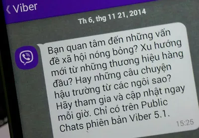 Đã có không ít khách hàng than thở họ thường xuyên bị dựng dậy bởi những tin nhắn “rác” phiền toái khi được chuyển đến lúc nửa đêm. Những tin nhắn này xuất hiện ở tất cả các OTT (dịch vụ tin nhắn, điện thoại miễn phí) quen thuộc như Viber, Zalo, Line, Kakao Talk…, trong đó, thường xuyên và nhiều nhất là từ Viber.