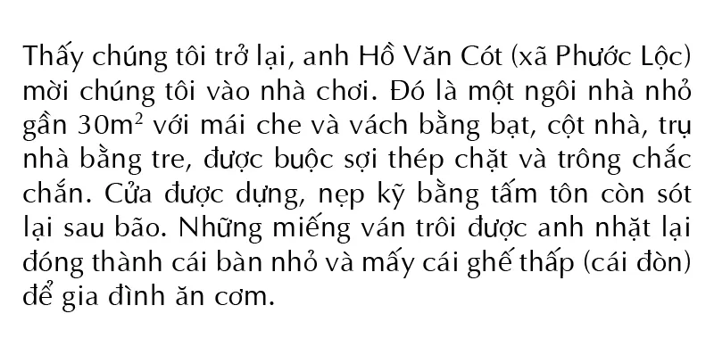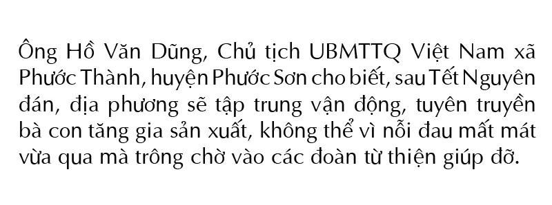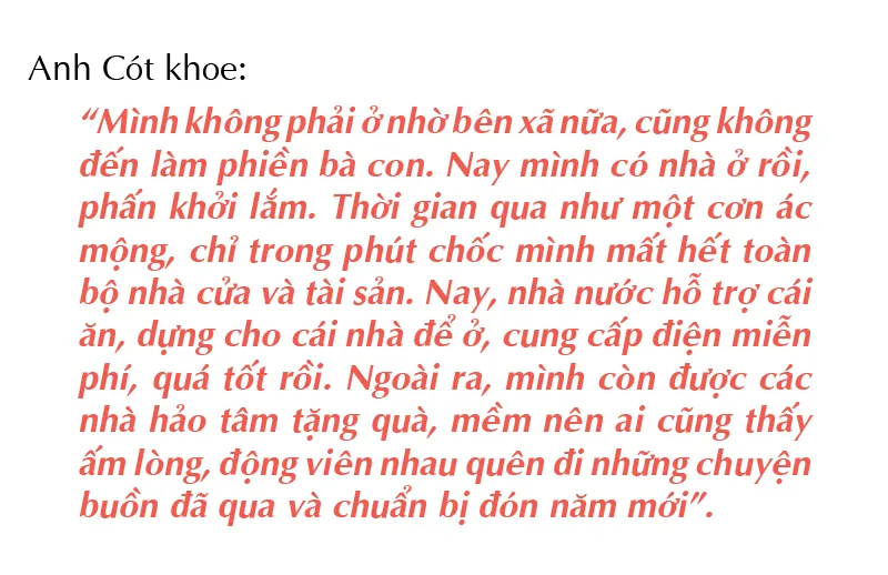 Tròn 2 tháng sau bão số 9, sạt lở, lũ quét gây cô lập 2 xã Phước Thành và Phước Lộc (huyện Phước Sơn, tỉnh Quảng Nam), chúng tôi trở lại nơi này trong những ngày đầu năm 2021. Bà con 2 xã nay đã có nơi ở mới, tuy không khang trang nhưng sạch sẽ, ấm áp, có điện, có nước sinh hoạt và hơn hết tình là đồng bào hiển hiện mãnh liệt, bà con ai nấy cũng vui mừng, phấn khởi chuẩn bị đón năm mới với nhiều hy vọng mới.