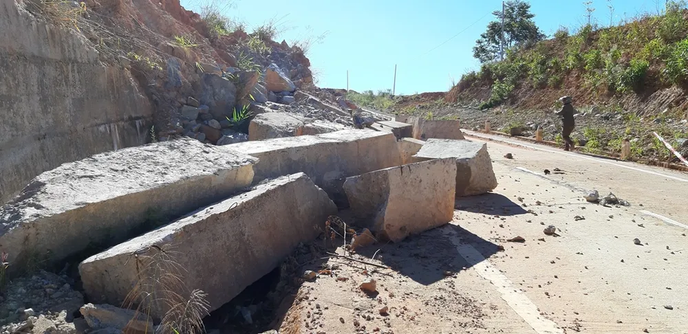 Một lãnh đạo Ban Quản lý dự án đầu tư xây dựng huyện Tu Mơ Rông (đại diện UBND huyện Tu Mơ Rông) làm chủ đầu tư cho biết, chưa tính diện tích đất đá ở taluy dương sạt lở vùi lấp đường, thì diện tích mặt đường nhựa bị sạt, hư hỏng, gãy là khoảng 300m2.
