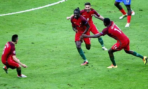 Các cầu thủ Bồ Đào Nha ăn mừng bàn thắng của Eder