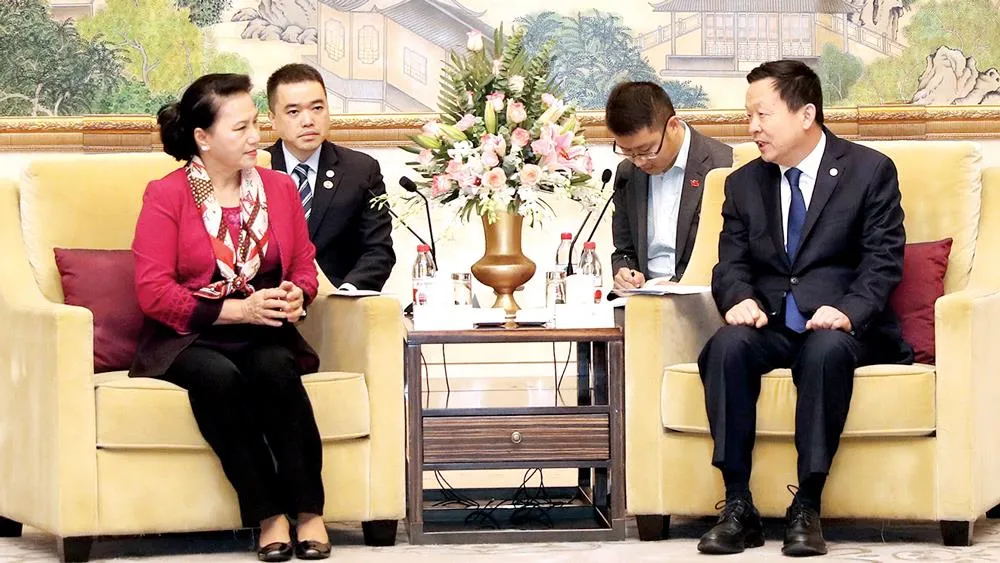 Chủ tịch Quốc hội Nguyễn Thị Kim Ngân khẳng định, Việt Nam coi trọng thúc đẩy quan hệ đối tác hợp tác chiến lược toàn diện Việt Nam - Trung Quốc phát triển ổn định, bền vững, cũng như tăng cường giao lưu, hợp tác hiệu quả, thực chất giữa các địa phương 2 nước; đồng thời tạo mọi điều kiện thuận lợi để các doanh nghiệp nước ngoài đến đầu tư, kinh doanh tại Việt Nam...