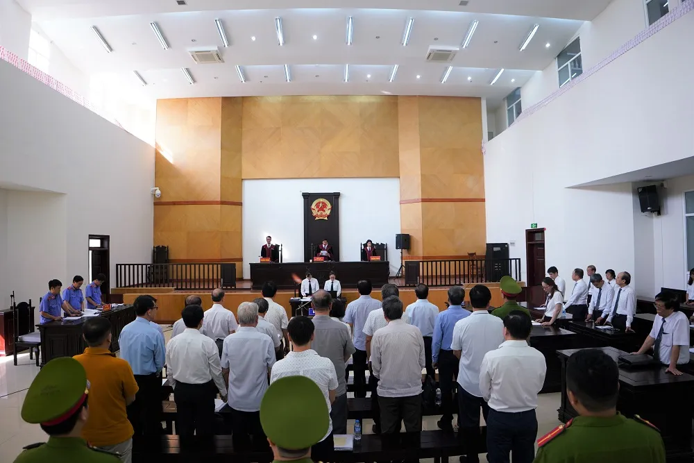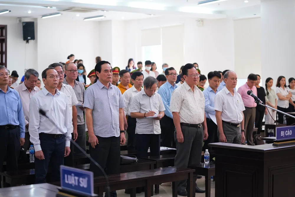 Các cựu lãnh đạo, cựu cán bộ UBND TP Đà Nẵng nghe tuyên án. Ảnh: GIA KHÁNH