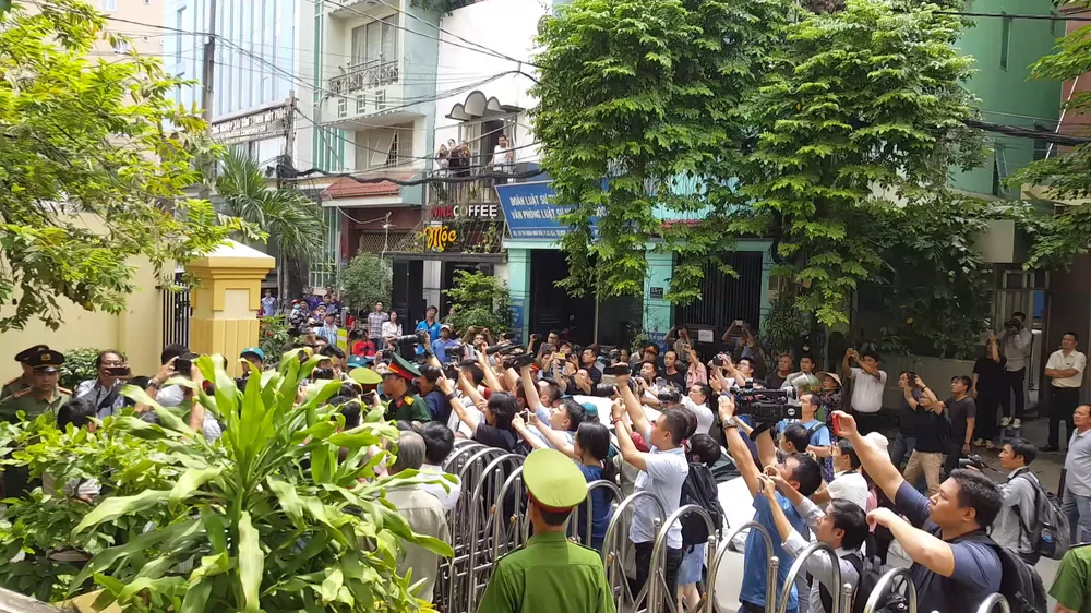 Ông Linh tới tòa khá sớm, không mang khẩu trang che mặt. Khi thấy rất đông phóng viên chờ phía ngoài trụ sở tòa án, ông Linh đi như chạy vào trong. Vì vụ án được xử kín, các phóng viên được sắp xếp vào một phòng ở lầu dưới phòng xử, chờ tuyên án.