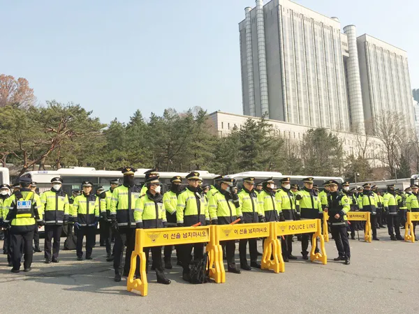 An ninh thắt chặt tại Tòa án Trung tâm Seoul ngày 30-3-2017. Ảnh: CNA