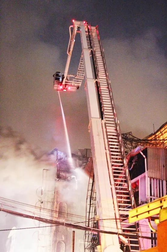 Đám cháy xảy ra ban đêm, có diện tích rộng và cháy trên các tầng cao gây rất nhiều khó khăn cho công tác chữa cháy.