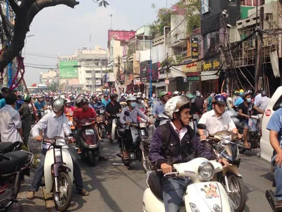Đường Trần Quốc Thảo đoạn từ cầu Lê Văn Sỹ đến Bệnh viện Tai Mũi Họng kẹt xe kéo dài trong nhiều giờ vào sáng 31-12.