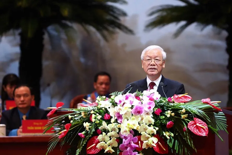 Tổng Bí thư nhấn mạnh, công đoàn luôn gắn bó máu thịt với giai cấp công nhân, đồng hành với dân tộc và Đảng Cộng Sản Việt Nam, phấn đấu xây dựng một nước Việt Nam độc lập, hòa bình, thống nhất; dân giàu, nước mạnh, dân chủ, công bằng, văn minh.