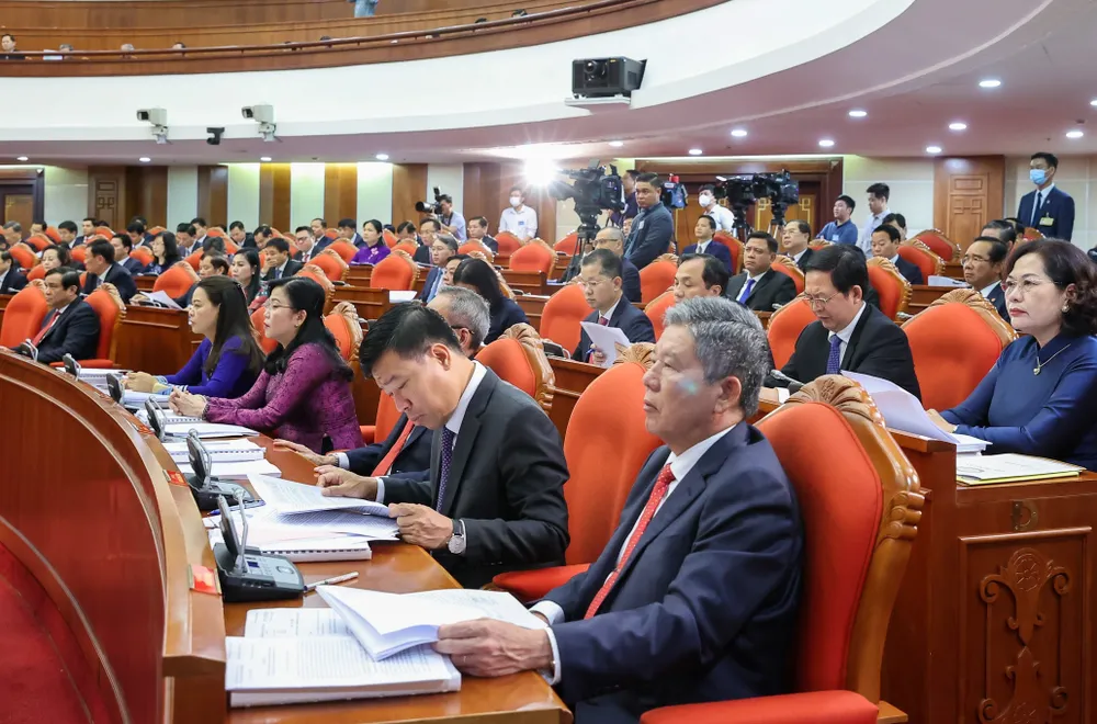 Quang cảnh phiên khai mạc Hội nghị Trung ương 6 khóa XIII khi Tổng Bí thư Nguyễn Phú Trọng phát biểu khai mạc. Ảnh: VIẾT CHUNG Về nội dung tiếp tục xây dựng và hoàn thiện Nhà nước pháp quyền xã hội chủ nghĩa Việt Nam trong giai đoạn mới, Tổng Bí thư Nguyễn Phú Trọng cho rằng: trong hơn 35 năm đổi mới vừa qua, Đảng và Nhà nước đã luôn luôn kiên định và vận dụng, phát triển sáng tạo chủ nghĩa Mác - Lênin, tư tưởng Hồ Chí Minh và tiếp thu có chọn lọc những giá trị phổ quát của nhân loại về Nhà nước pháp quyền để xây dựng, hoàn thiện Nhà nước pháp quyền xã hội chủ nghĩa Việt Nam do Đảng Cộng sản lãnh đạo, phù hợp với điều kiện cụ thể của đất nước và đã đạt được nhiều kết quả, thành tựu rất quan trọng. Đặc biệt, dân chủ xã hội chủ nghĩa ngày càng được nhận thức đúng đắn hơn và phát huy mạnh mẽ hơn, coi đây là cốt lõi của vấn đề đổi mới hệ thống chính trị. Tuy nhiên, bước vào giai đoạn phát triển mới, trước những yêu cầu và nhiệm vụ mới, Đại hội XIII của Đảng đã khẳng định sự cần thiết phải “tiếp tục xây dựng và hoàn thiện Nhà nước pháp quyền xã hội chủ nghĩa Việt Nam”, coi đây “là nhiệm vụ trọng tâm của đổi mới hệ thống chính trị”; đồng thời, đề ra nhiệm vụ tiếp tục đẩy mạnh nghiên cứu, xây dựng và hoàn thiện Nhà nước pháp quyền xã hội chủ nghĩa Việt Nam trong giai đoạn mới, trong đó có xác định những nhiệm vụ trọng tâm đến năm 2030, tập trung ưu tiên xây dựng, hoàn thiện hệ thống pháp luật và cải cách hành chính, cải cách tư pháp.