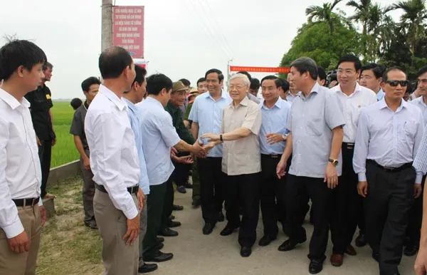 Tổng Bí thư Nguyễn Phú Trọng và đoàn công tác của Trung ương đến thăm hỏi bà con nhân dân ở khu dân cư nông thôn mới kiểu mẫu thôn Tân Văn, xã Thạch Văn, huyện Thạch Hà, tỉnh Hà Tĩnh