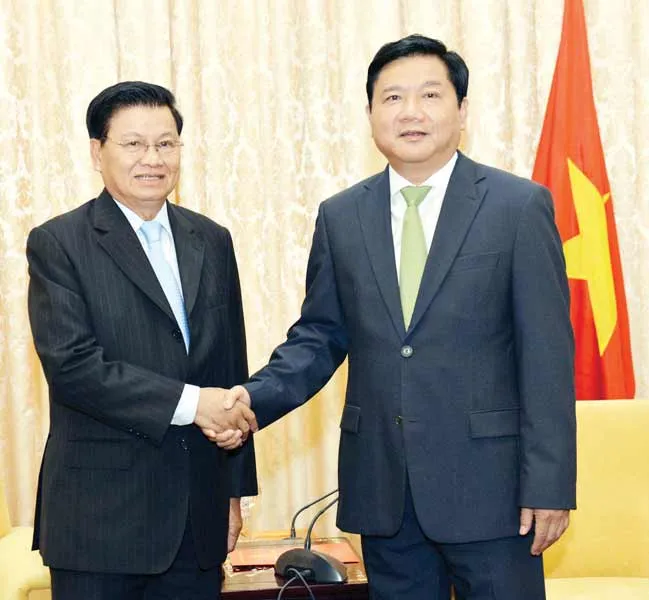 Bí thư Thành ủy TPHCM Đinh La Thăng tiếp Thủ tướng Lào Thongloun Sisoulith Ảnh: VIỆT DŨNG