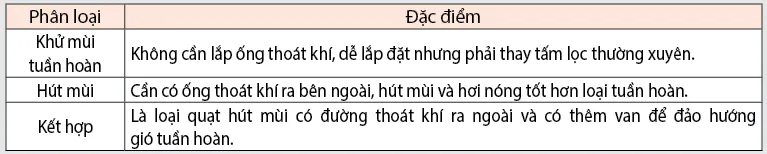 - Không nên chọn loại khử tuần hoàn vì không phù hợp với tập quán nấu ăn và điều kiện khí hậu ở Việt Nam;