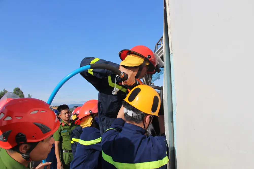 Lực lượng cứu nạn dùng nhiều phương tiện hiện đại để giải cứu nạn nhân mắc kẹt trong cabin