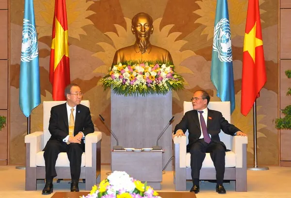 Chủ tịch Quốc hội Nguyễn Sinh Hùng hội kiến với Tổng Thư ký Liên hợp quốc Ban Ki - moon. Ảnh: Lã Anh
