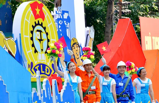 Công nhân tham gia lễ kỷ niệm 40 năm ngày giải phóng miền Nam, thống nhất đất nước. Ảnh: VIỆT DŨNG