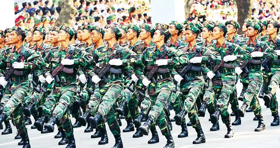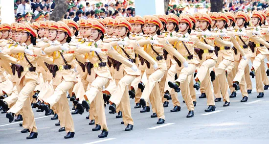 Tiếp theo sau là đội hình diễu binh của các lực lượng vũ trang Quân đội Nhân dân Việt Nam. Đi đầu là xe chỉ huy và Tổ quân kỳ do Trung tướng Bế Xuân Trường, Phó Tổng Tham mưu trưởng Quân đội Nhân dân Việt Nam dẫn đầu; Quân kỳ Quyết thắng 5 Huân chương Sao vàng lấp lánh cùng nhiều phần thưởng cao quý khác của Đảng và Nhà nước trao tặng, thể hiện ý chí, niềm tin sức chiến đấu, những chiến công hào hùng của Quân đội Nhân dân Việt Nam sau hơn 70 năm xây dựng, chiến đấu, trưởng thành. Tiếp theo là đội hình của các quân binh chủng Quân đội Nhân dân Việt Nam, lực lượng dân quân tự vệ, nữ du kích Củ Chi, cựu chiến binh. Tiếp đó là phần trình diễn của lực lượng công an nhân dân với các khối sĩ quan, cảnh sát, cảnh sát giao thông, cảnh sát cơ động, phòng cháy chữa cháy, sĩ quan công an TPHCM, công an xã và khối hồng kỳ.