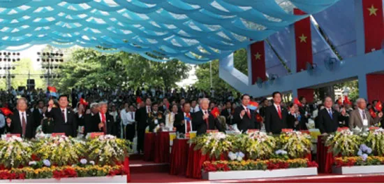 Dưới sự lãnh đạo sáng suốt, tài tình của Đảng và Bác Hồ kính yêu, quân và dân cả nước đã vượt qua muôn vàn khó khăn, gian khổ, kiên cường, sáng tạo, anh dũng chiến đấu, hy sinh, lập nên những chiến công oanh liệt, mà đỉnh cao là cuộc Tổng tiến công và nổi dậy mùa Xuân năm 1975, kết thúc bằng sự toàn thắng của Chiến dịch Hồ Chí Minh lịch sử, giải phóng hoàn toàn miền Nam, thống nhất đất nước. Thắng lợi của cuộc kháng chiến chống Mỹ cứu nước là thắng lợi của lòng yêu nước nồng nàn - của khát vọng hòa bình, độc lập, tự do và thống nhất đất nước của đồng bào ta; của đường lối và nghệ thuật quân sự Việt Nam dưới sự lãnh đạo đúng đắn, tài tình, sáng tạo của Đảng ta; của sức mạnh tổng hợp của khối đại đoàn kết toàn dân tộc; của lòng trung thành tuyệt đối và tinh thần quyết chiến, quyết thắng của các lực lượng vũ trang nhân dân với sự chỉ huy thao lược của các vị tướng lĩnh tài ba; của tình hữu nghị và sự ủng hộ, giúp đỡ to lớn, hiệu quả của bạn bè quốc tế; của liên minh chiến đấu kề vai sát cánh chống kẻ thù chung của nhân dân ba nước Việt Nam, Lào, Campuchia. Với truyền thống hòa hiếu của dân tộc Việt Nam, chúng ta nhất quán thực hiện chủ trương khép lại quá khứ, hướng tới tương lai. Việt Nam là bạn, là đối tác tin cậy, là thành viên có trách nhiệm trong cộng đồng quốc tế; hợp tác bình đẳng, cùng có lợi; tuân thủ Hiến chương Liên hiệp quốc; tôn trọng độc lập, chủ quyền, toàn vẹn lãnh thổ, không can thiệp vào công việc nội bộ của nhau; góp phần vào sự nghiệp hòa bình, độc lập dân tộc, dân chủ và tiến bộ xã hội trên thế giới (Toàn văn diễn văn của Thủ tướng Nguyễn Tấn Dũng).