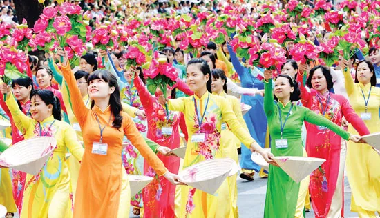 Phụ nữ TPHCM diễu hành tại lễ kỷ niệm.