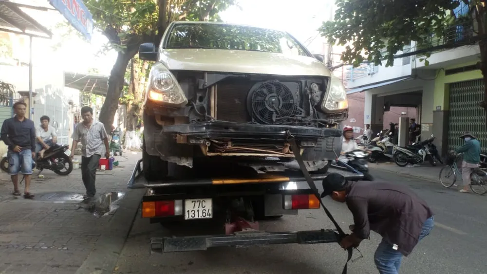 Sau khi nhận được tin báo, lực lượng CSGT TP Quy Nhơn đã tổ chức lực lượng truy tìm, phát hiện ô tô nói trên đang đậu tại một điểm chuyên rửa xe ô tô trên ở địa chỉ số 22, đường Phạm Ngọc Thạch (TP. Quy Nhơn) để rửa xe. Ô tô đã xịt lốp trước, phần đầu bị hư hỏng biến dạng và tài xế đã đi khỏi.