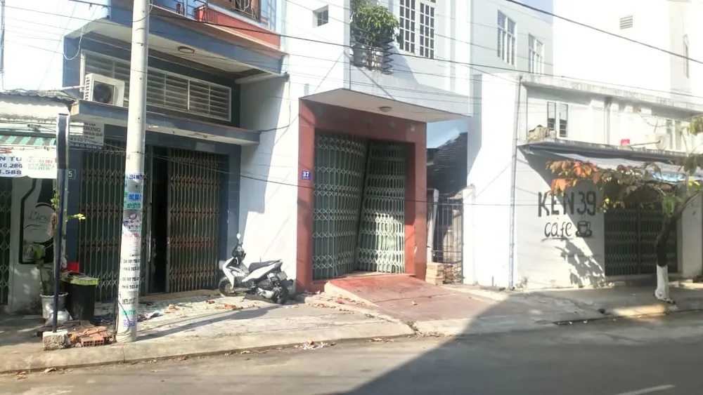 Cánh cửa căn nhà số 37 đường Trần An Tư bị tông biến dạng, bức tường bên hông trái căn nhà bị tông sập