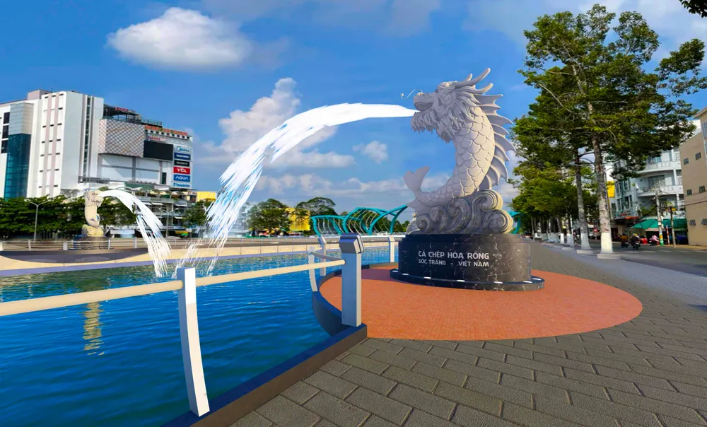 Trước đó, UBND TP Sóc Trăng (tỉnh Sóc Trăng) đã có nghị quyết về chủ trương đầu tư xây dựng cặp tượng "cá chép hoá rồng" đặt 2 bên bờ sông Maspero.