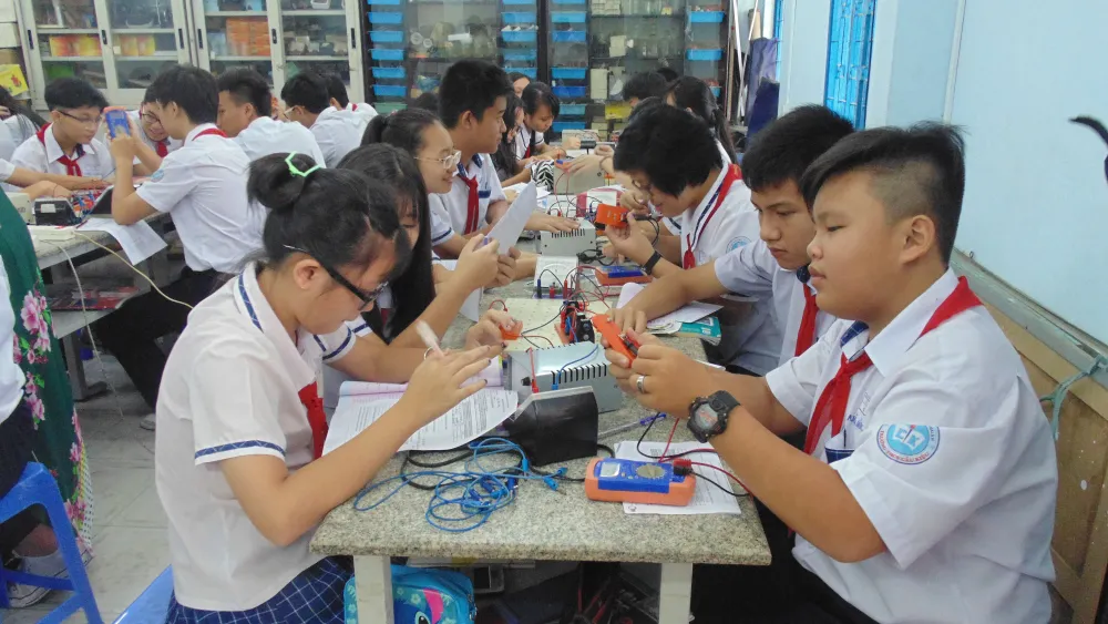 Học sinh Trường THCS Cầu Kiệu (quận Phú Nhuận) trong một giờ thực hành