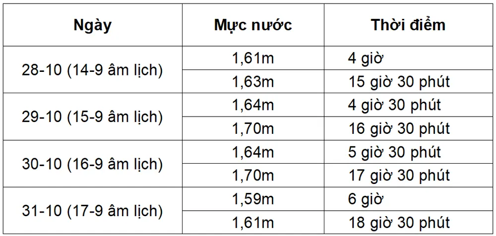 Đồng thời, các lực lượng chức năng phối hợp bố trí máy bơm nước di động kịp thời khắc phục điểm ngập úng do triều cường gây ra. Đối với tuyến đường ngập do triều cường, các đơn vị có biện pháp đảm bảo an toàn (lắp biển cảnh báo, rào chắn, đèn báo hiệu…) nhằm tránh xảy ra tai nạn khi ngập úng.