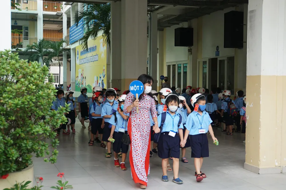 Sáng 1-9, 280 học sinh lớp 1, Trường Tiểu học Đinh Tiên Hoàng (quận 1) đã nô nức tựu trường. Cô Trần Thị Thu Hương, hiệu trưởng nhà trường cho biết, trước đó trường đã tiến hành tổng vệ sinh trường, lớp và khử khuẩn tất cả phòng học. Tại mỗi lớp học, giáo viên cũng tổ chức trang trí phòng học để chào đón học sinh mới.