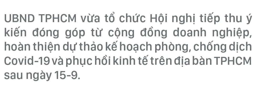 UBND TPHCM vừa tổ chức Hội nghị tiếp thu ý kiến đóng góp từ cộng đồng doanh nghiệp, hoàn thiện dự thảo kế hoạch phòng, chống dịch Covid-19 và phục hồi kinh tế trên địa bàn TPHCM sau ngày 15-9.